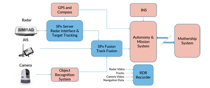 Other potential track sources on a USV include AIS and video object recognition systems, and track sources can be combined into a single track stream (Cambridge Pixel use SPx Fusion). The resulting track picture is passed to the autonomy system, where it is used for situational awareness and collision avoidance.