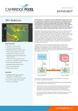 Cambridge Pixel's radar distribution product, SPx Server, is able to receive, process and distribute radar video from its host machine to any number of client displays using standard Ethernet networks. Where the network is robust and reliable this process works well. The encoding process in SPx Server can be adjusted to accommodate the available bandwidth of the network, for example using processing to down-sample the radar data where data reduction is desired. The distribution is made more difficult, however, when the available network bandwidth is very low, variable or where the data link is unreliable. This is where RadarLink, working in conjunction with SPx Server, provides a solution.