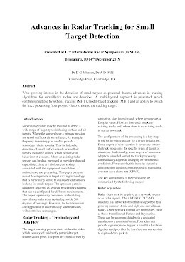 Advances in Radar Tracking for Small Target Detection - IRSI-19 Conference Paper