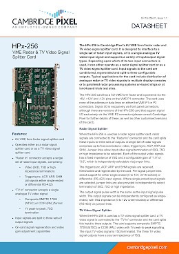 HPx-256 VME Radar & TV Video Signal Splitter Card Datasheet